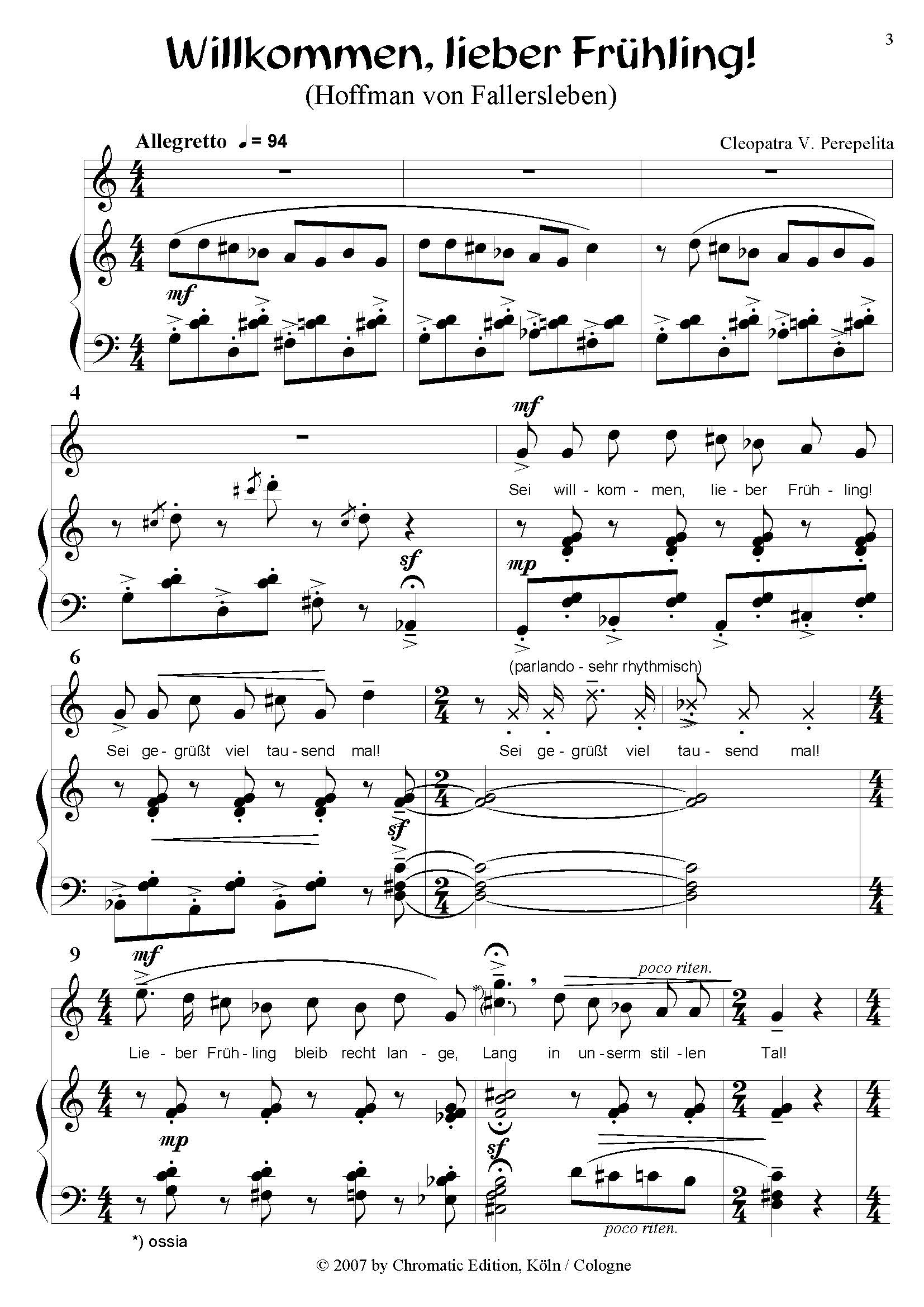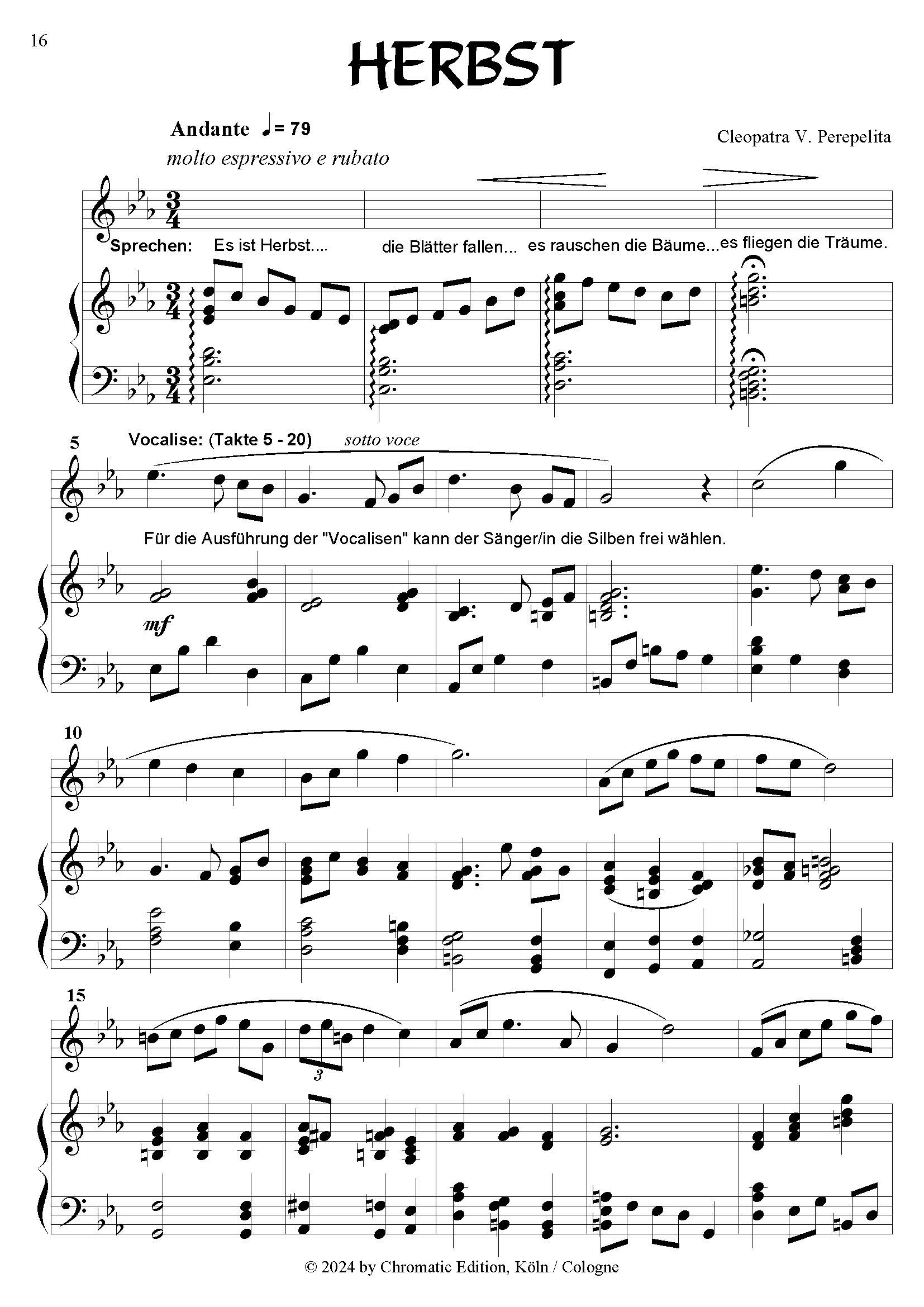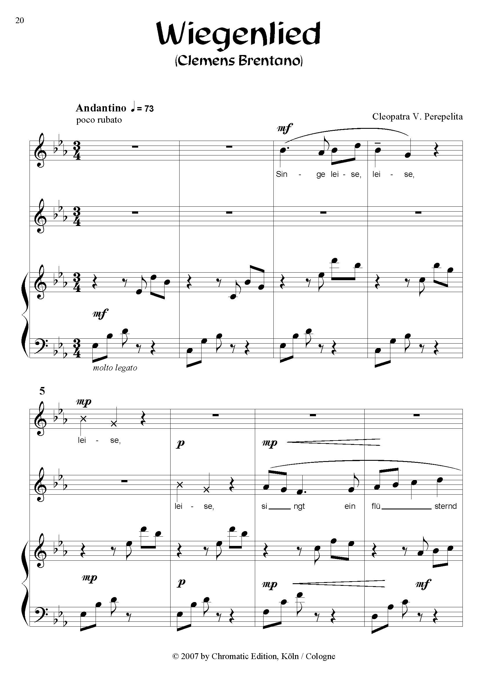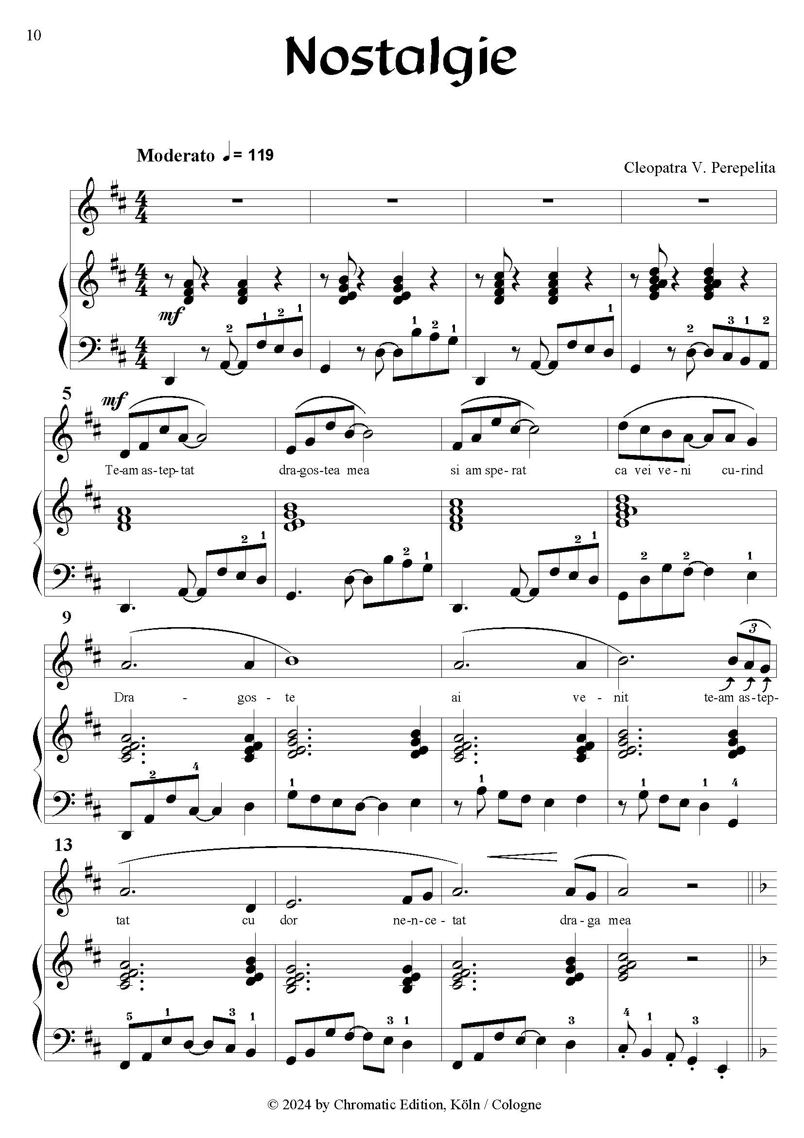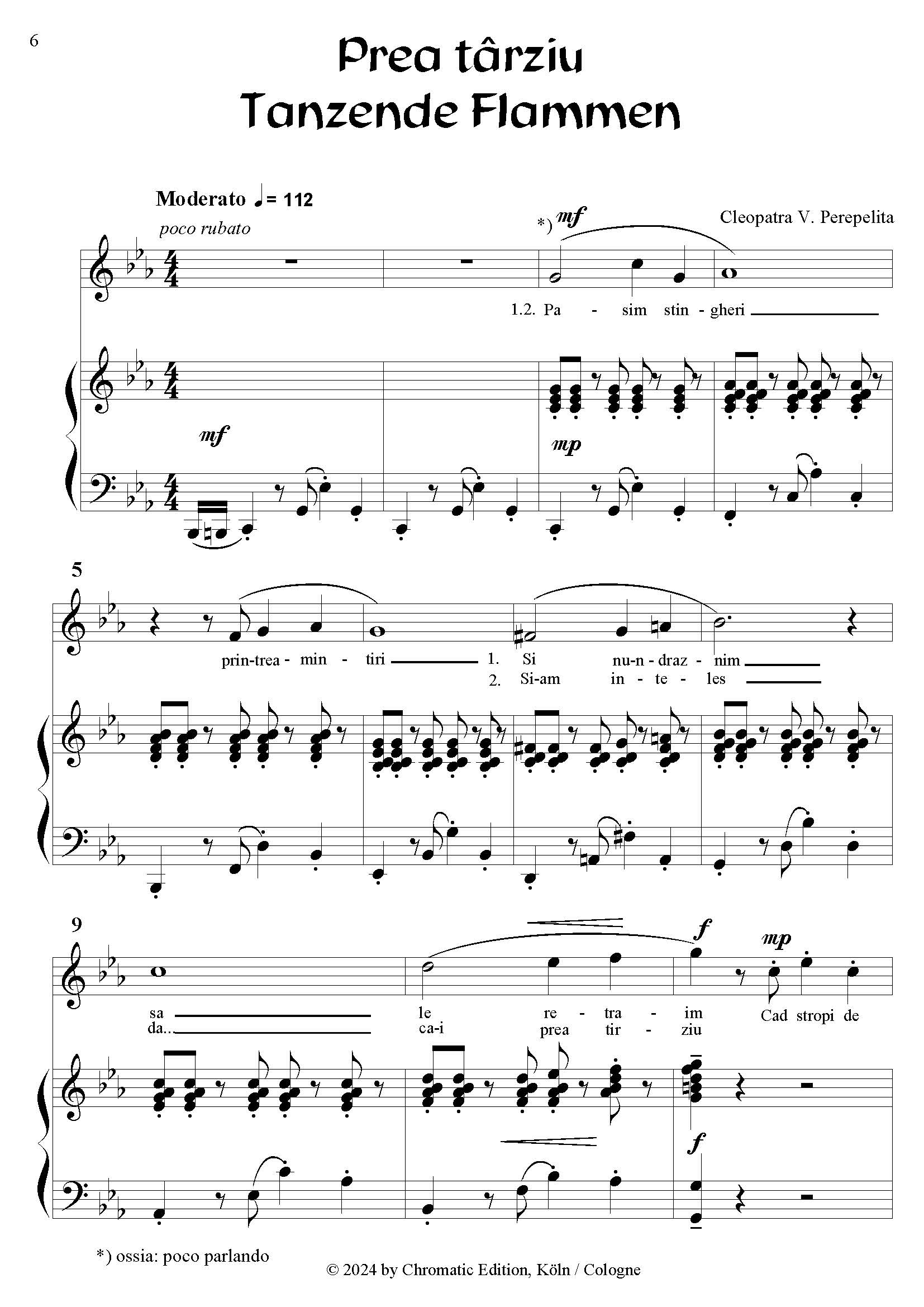 Cleopatra V. Perepelita Lieder für Singstimme und Klavier Mit Texten in Deutsch, Englisch, Französisch und in Rumänisch. - Die Lieder Nr.: 2, 3, 4 und 5 sind auch in weiteren Fassungen erhältlich: