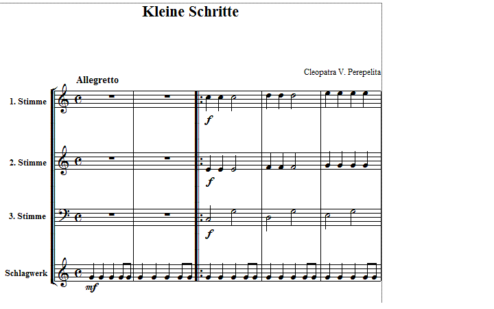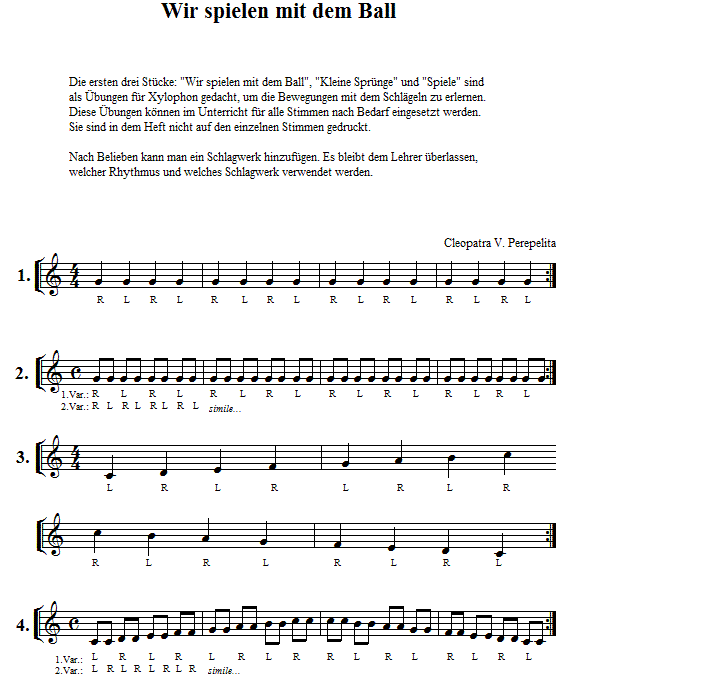 Mehrstimmige Melodien für Orff Instrumente Leichte Stücke mit vielfältigen Besetzungsmöglichkeiten: Zweier-, Dreier- und Vierer- Kombinationen von Stabspielen, Streich-, Blas- und Rhythmusinstrumenten. Die Sätze sind einfach geschrieben, daher leicht spielbar, haben aber trotzdem im Zusammenspiel eine orchestrale Wirkung. Die 2. und 3. Stimme ist für Diejenigen, die den Bassschlüssel nicht gelernt haben, zusätzlich in den Violinschlüssel transponiert. Partitur und Stimmen Schwierigkeitsgrad:U1