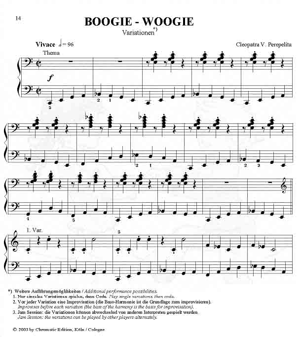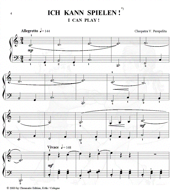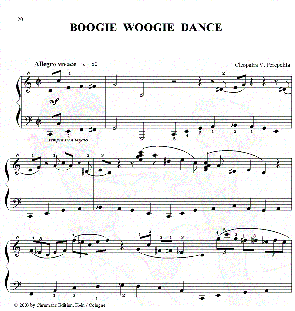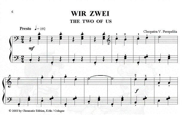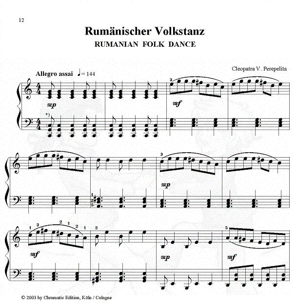 Cleopatra V. Perepelita Mein erstes Konzert - Wir tanzen am Klavier 10 Tänze für Klavier zu zwei Händen. Rumänischer Volkstanz, Walzer, Polka, Boogie-Woogie Dance, Ragtime oder die Einladung zur Jam Session in einem Thema mit Variationen auf einen Boogie-Woogie, entwickeln in den Kindern das rhythmische Gefühl, führen in die Welt der Tänze und des Jazz ein und wecken die Spielfreude der Kinder in munteren, rhythmischen Stücken, die reizvoll klingen, und dem Klavierspieler wirkungsvolle Erfolgserlebnisse bringen. Das Notenmaterial ist optisch liebevoll gestaltet, die mit Wasserzeichen illustrierten Seiten begleiten den Schüler beim täglichen Üben. Die Klavierstücke eignen sich gut für Wettbewerbe und Konzerte. Eine Ergänzung zu dieser zweihändigen Fassung ist die Suite für Klavier zu vier Händen, die dieselben Stücke enthält. |