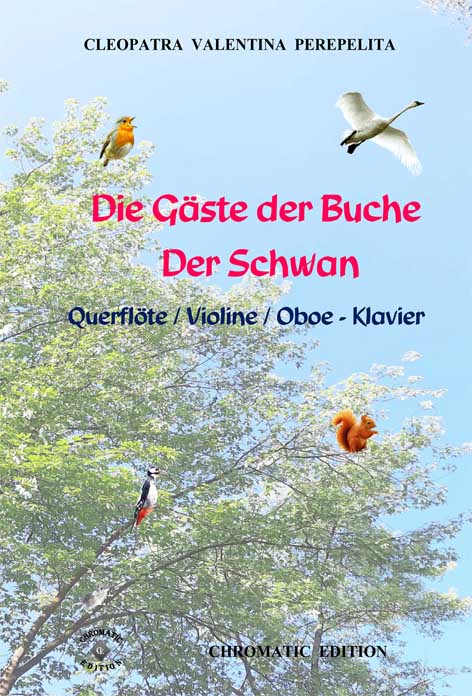 Cleopatra V. Perepelita Die Gäste der Buche - Der Schwan Duo für Querflöte, Violine, Oboe und Klavierbegleitung Diese Suite "Die Gäste der Buche" enthält fünf Kompositionen. Die erste vier Kompositionen sind inspiriert von dem Gedicht "Die Gäste der Buche" von Rudolf Baumbach (1842-1905).Zusätzlich gibt es das Klavierstück "Der Schwan", das 2003 im Rahmen des Klavierzyklus "Dialog mit meinen Lieblingstieren" erschienen ist.